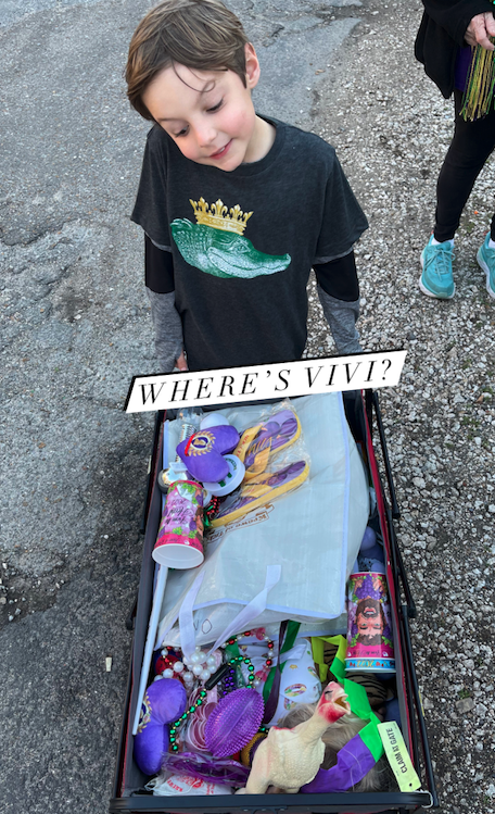 My mom was born and raised in New Orleans, one of ten kids in a big, bustling family that made their home in Uptown. So from the time I was little, Mardi Gras wasn’t just something we saw pictures of—it was something we lived. I remember being hoisted onto my dad’s shoulders, reaching for beads as the floats rolled by, dazzled by the colors, the music, the magic of it all.